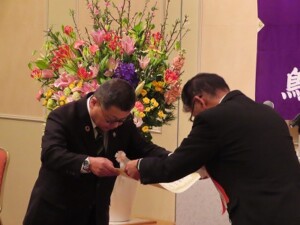 式の最後に受章者を代表して、北栄町議会議員 津川俊仁 氏が謝辞を述べられ、表彰式を閉会いたしました。