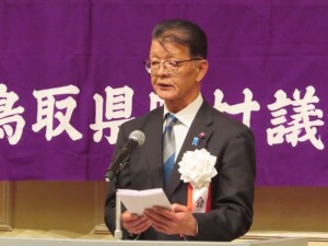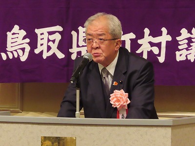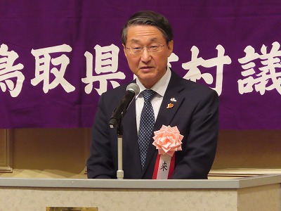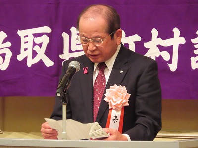 表彰伝達後、ご来賓の鳥取県知事 平井伸治 様、鳥取県議会議長 浜崎晋一 様、鳥取県町村会会長 吉田英人 様よりご祝辞を頂戴いたしました。
