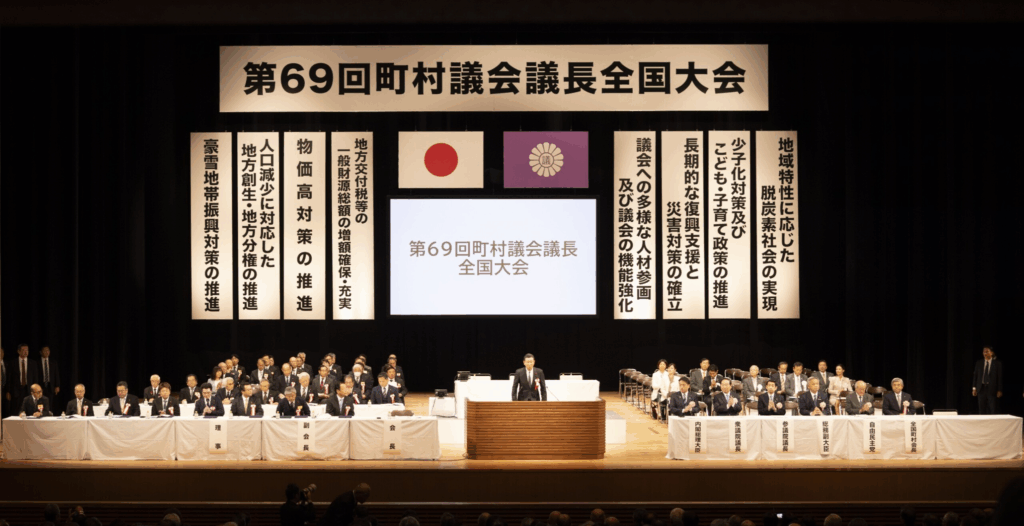 令和7年11月12日(水)正午より東京都「NHKホール」において第69回町村議会議長全国大会が開催され、本県からも県内の町村議会議長が参加しました。