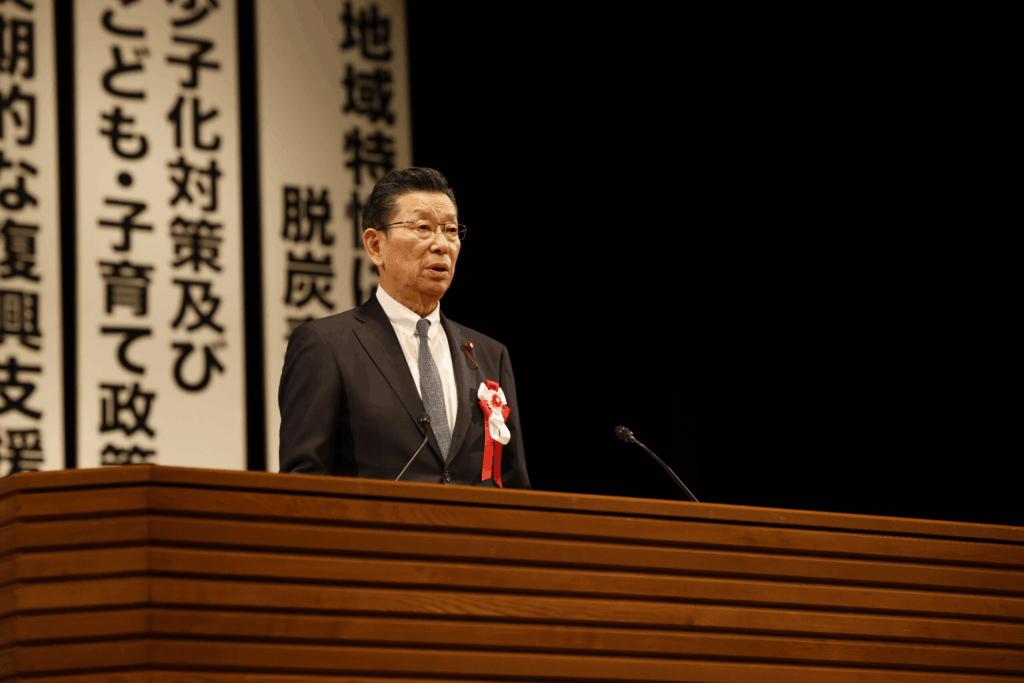 来賓祝辞では、尾﨑正直内閣官房副長官(メッセージ代読)、額賀福志郎衆議院議長、関口晶一参議院議長、髙橋克法総務副大臣、赤松事務総長(メッセージ代読)、鈴木俊一自民党幹事長、棚野孝夫全国町村会長が祝辞を述べられました。